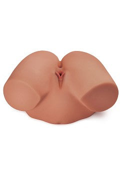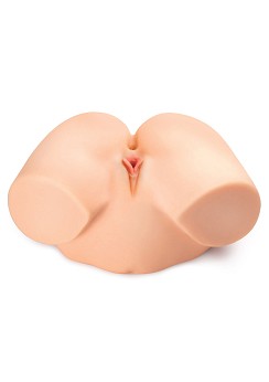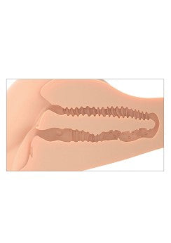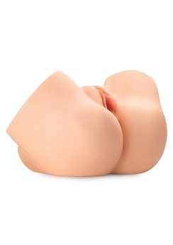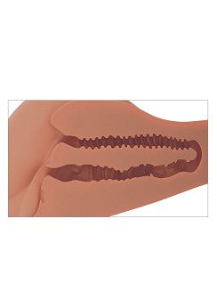 Obs: Båda hålen ansluter till samma inre kanal, som är cirka 25 cm lång. Tunnelväggarna är avsedda att vara täta och töjbara och är inte särskilt breda när du först börjar. Med några få användningar, elasticiteten kommer att öka och bör kunna rymma de flesta storlekar.